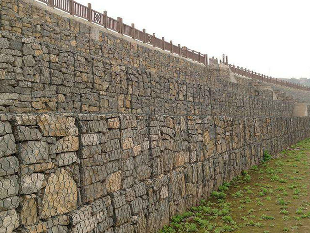 加筋石籠網 鉛絲石籠網是由金屬線材編織成角形網(六角網)組裝而成的網箱,由于編織的金屬線材類似鉛絲,因此叫鉛絲石籠網。根據工程設計要求組裝成箱籠,并裝入塊石等填充料后連接成一體,用做堤防、路基防護、護坡護岸等工程......